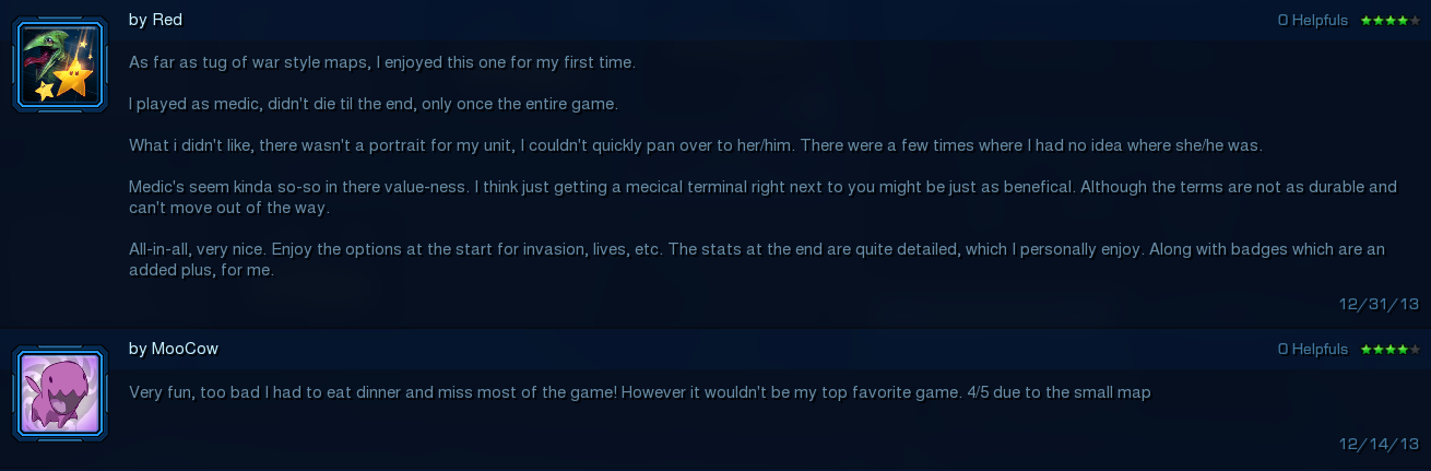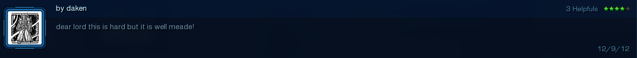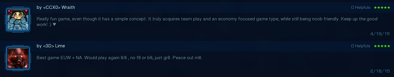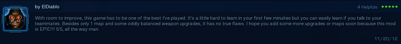 I have always appreciated the communities response and the kind words given in reviews, on the forums and via email by fans of the mod. It has continued to be an inspiration and something that encourages me to pursue professional game development in the future.